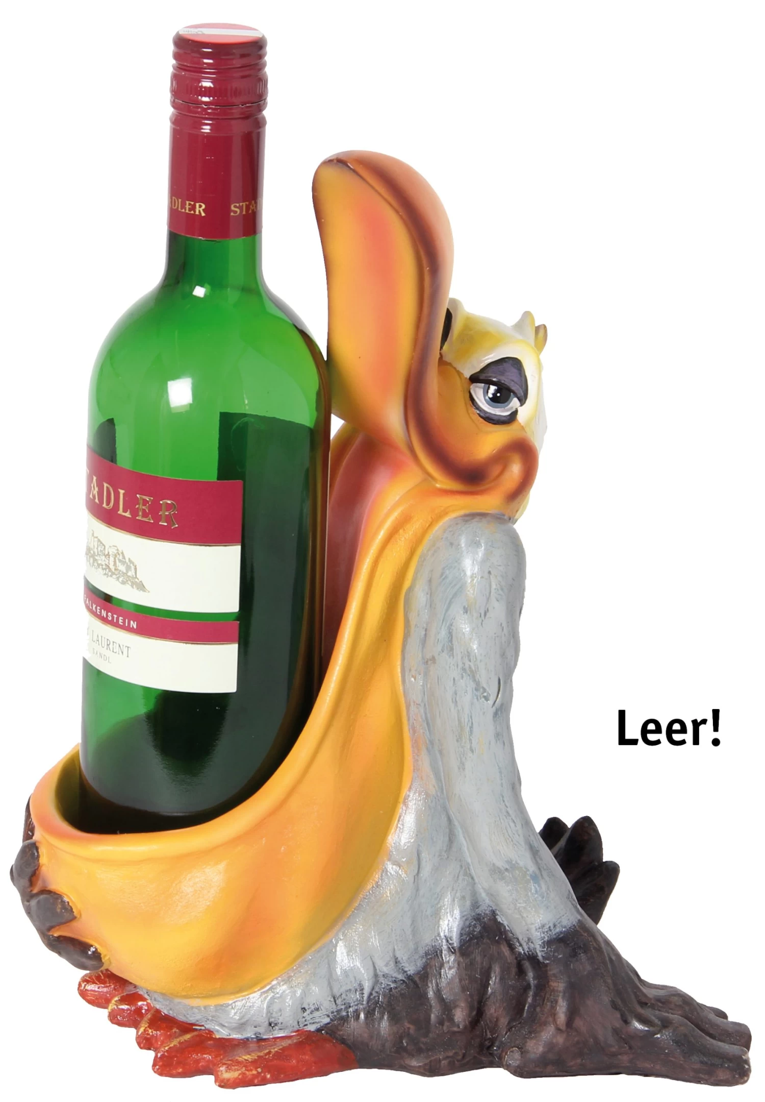 Auf dem Pelikan kann eine Flasche Wein untergebracht werden, genauso gut finden aber auch Süssigkeiten Platz. Auch kann er als Dekofigur oder zur Aufbewahrung von Schlüsseln genutzt werden – Ihrer Kreativität sind keine Grenzen gesetzt.