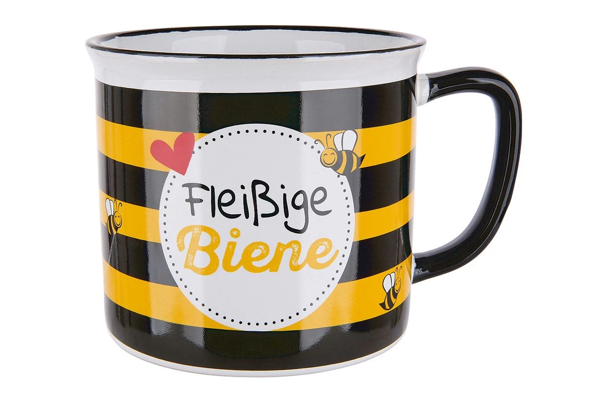 Gilde 46900 Keramik Tasse „Fleißige Biene“ Schwarz-Gelb 400ml