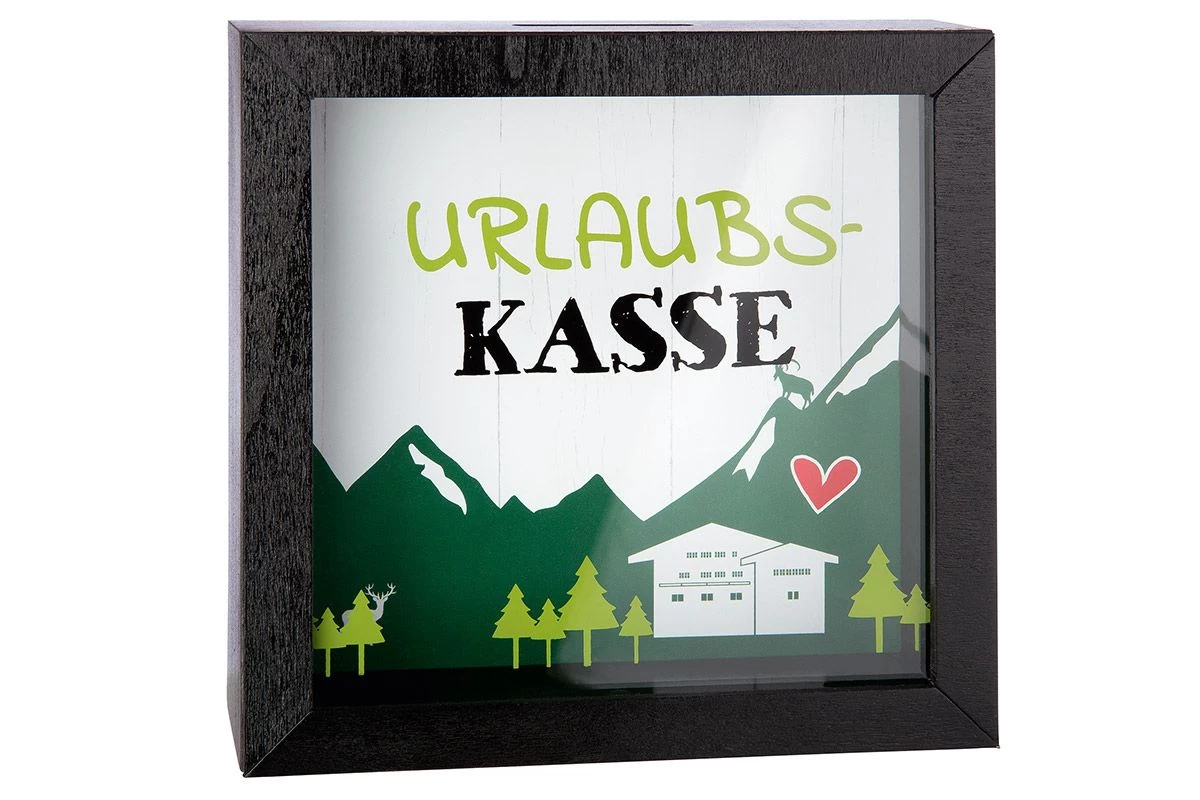 Gilde 49904 Spardose „Urlaubskasse“ Schwarz/grün/creme, Mit Sichtfenster