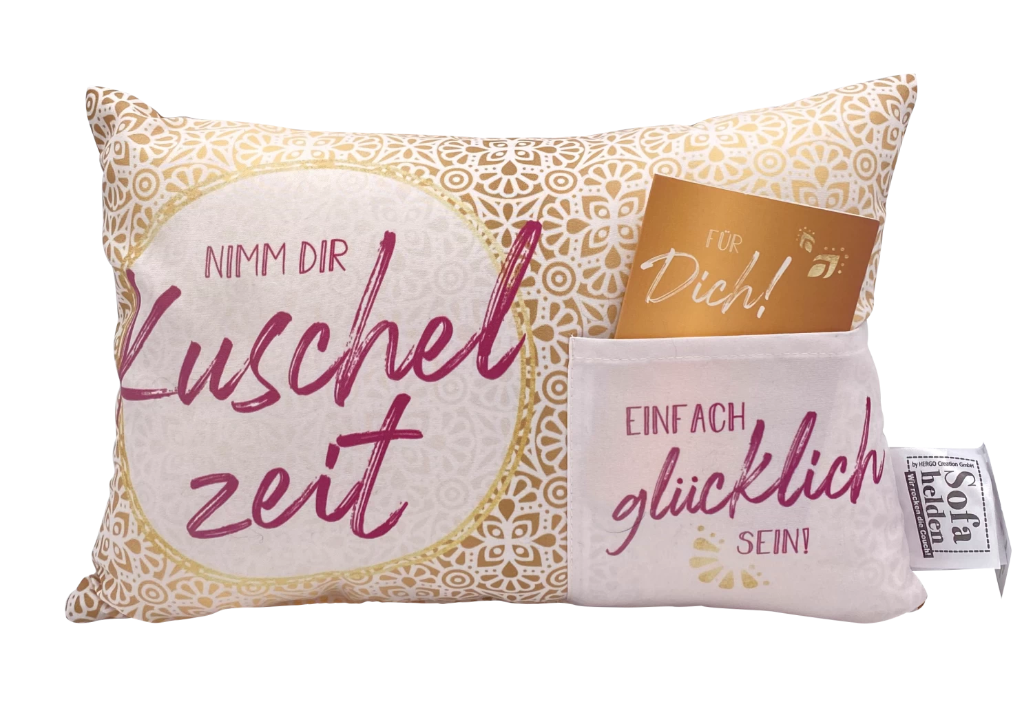 Das perfekte Geschenk-Kissen mit Fach für Handy, Fernbedienung oder Brille.