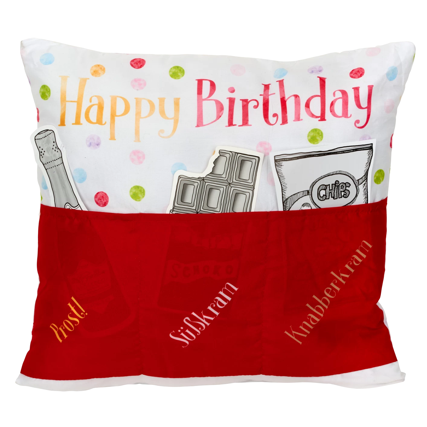Hergo Sofahelden Kissen Mit Taschen 43x43cm – Happy Birthday Rot 8976