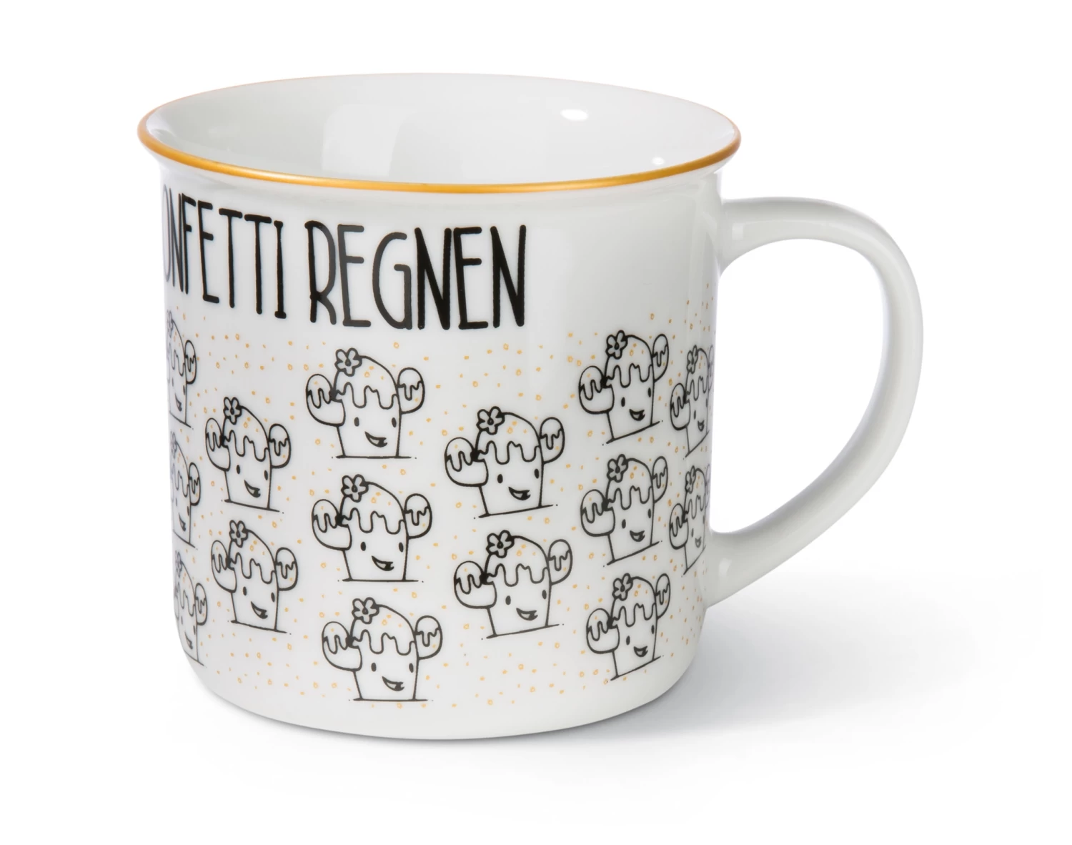 Nici 45017 Porzellantasse Metallic „Für Dich Soll Es Konfetti Regnen“ Kaktus