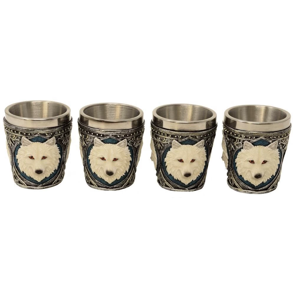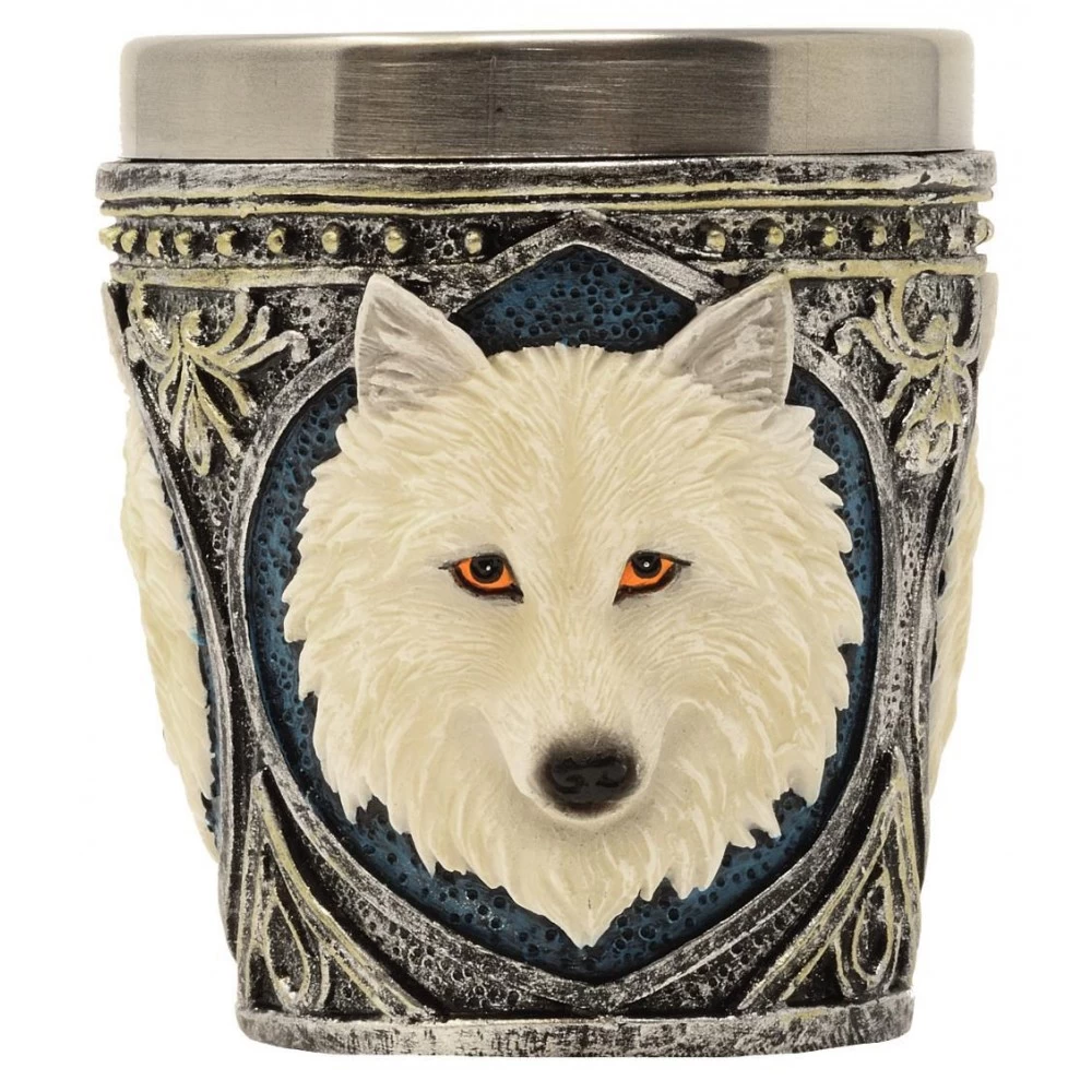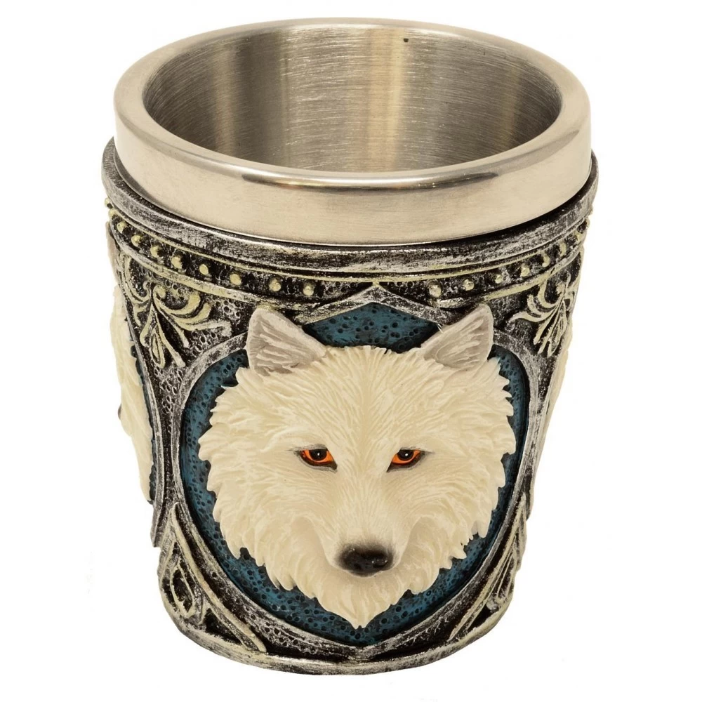 Becher aus Metal, Wolf aus Polyresin